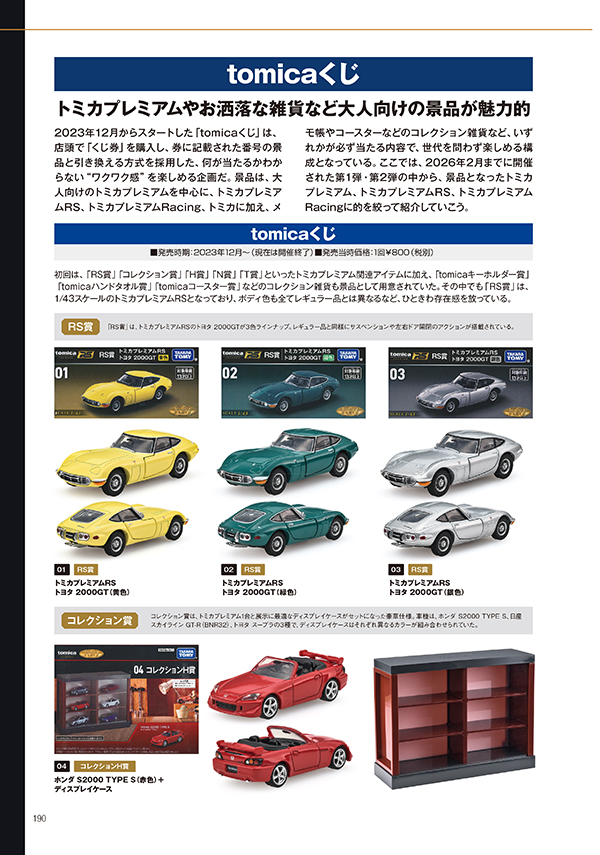 【トミカプレミアム誕生10周年を記念した公式コレクションガイドブック】トミカプレミアムの誕生10周年を記念して、これまで発売されたトミカプレミアム製品を完全収録した公式ガイドブック『トミカプレミアム大全2』。5周年時に発売した『トミカプレミアム大全』に引き続き、全車を網羅する総カタログでは、今回も詳細な写真で各車の魅力や特徴を分かりやすく解説する。他にも、店頭では販売されないタカラトミーモール・オリジナルの製品情報も収録するなど、トミカプレミアムのコレクションガイドとしても役立つ1冊となっている。