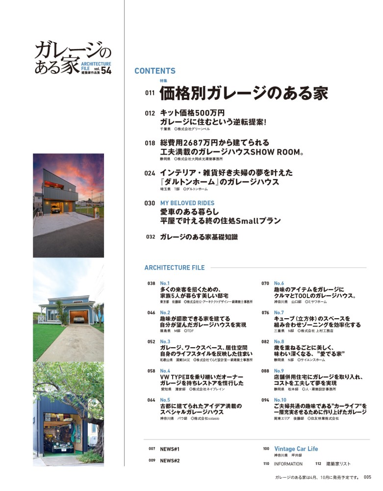 『ガレージのある家 vol.54』の巻頭特集は、「価格別 ガレージのある家」。