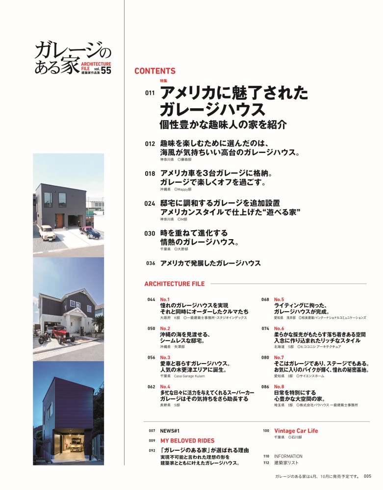 『ガレージのある家 vol.55』の巻頭特集は、「アメリカに魅了されたガレージハウス」。