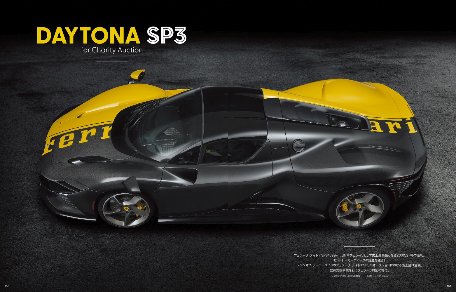 表紙と巻頭グラビアは849テスタロッサ。1956年に登場した500TR以来伝説のネーミングたるテスタロッサが遂に復活。ベルリネッタ、スパイダー、アセットフィオラーノと全26ページにて詳細をレポート。またペブルビーチ・コンクールデレガンス2025より、250LM、240アメリカーナなどの受賞車両を解説。ペブルビーチを彩る跳ね馬の美しさをご堪能いただく。その他、ベアシャシーが先行公開されたフル電動モデル、エレットリカやイタリアのモデナで開催された、カヴァリーノ・クラシック・モデナ2025も収録。また、ジウジアーロがデザインしたフェラーリGG50の20周年、ジウジアーロのアトリエ大公開などなど、多彩な内容と圧倒的なグラフィックで世界からフェラーリカルチャーをお届けしています。