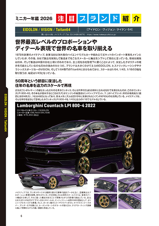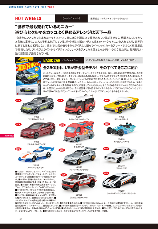 世界中でリリースされる数多くのミニカーをまとめた毎年恒例のイヤー・ブック「ミニカー年鑑」。この本は2025年に登場した新作を中心にまとめた最新作の「ミニカー年鑑2026」です。本編の製品カタログは、自動車模型の専門誌「モデル・カーズ」内のミニカー新製品情報に掲載された1年間(342~353号)の記事を再編集したもので、今回は70ブランドのダイキャストやレジンモデルを中心とした2400台超が収録する大ボリュームな内容となっています。そのほかには、2026年注目のブランドをフィーチャー。また、編集部オススメの全国ミニカーショップ情報など、ミニカーファンはもとより、クルマ好きの方も楽しめる内容です。