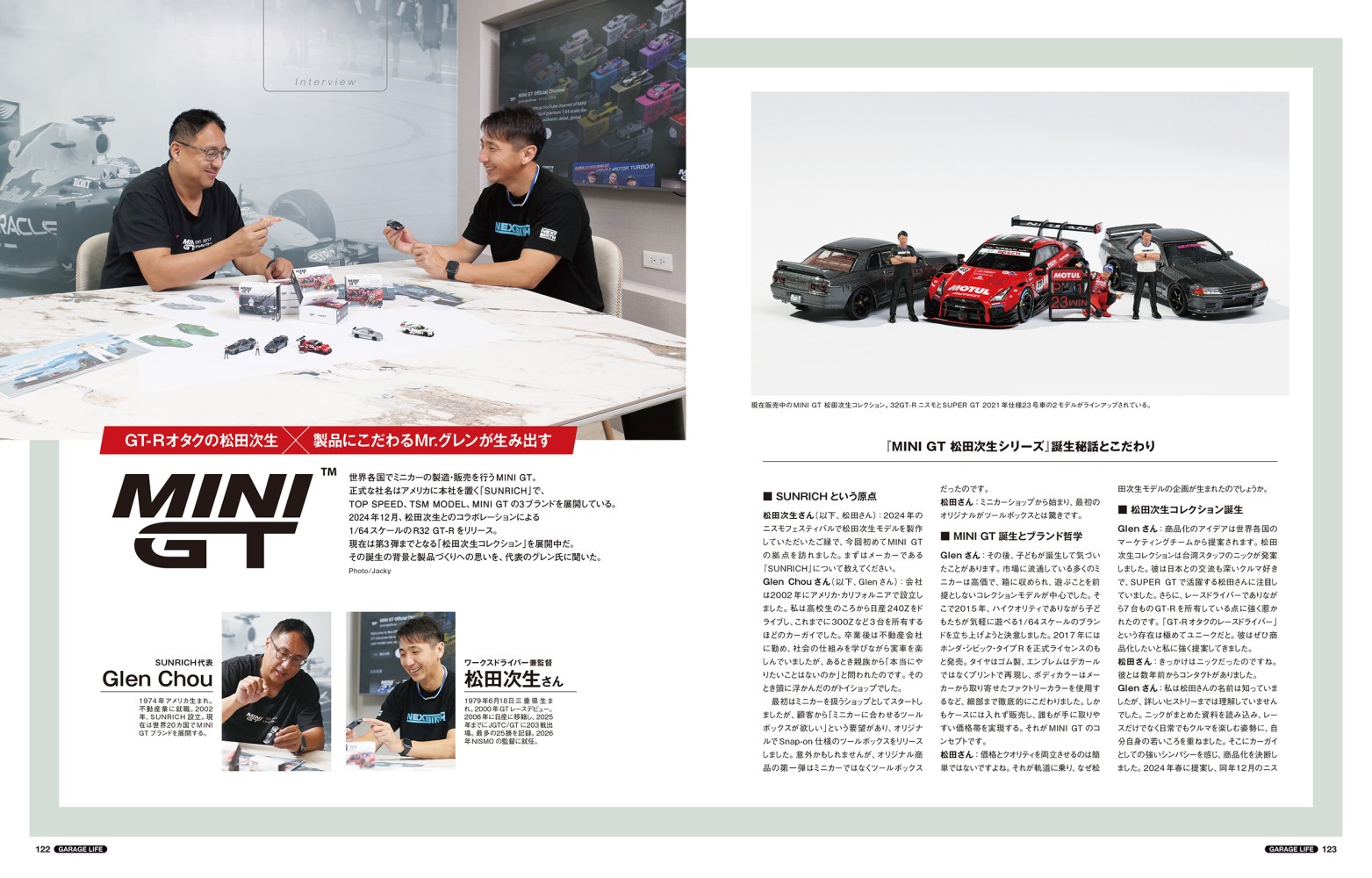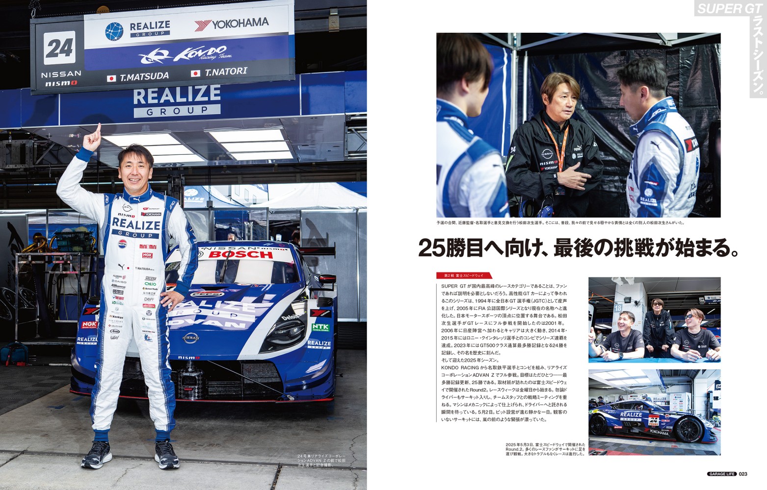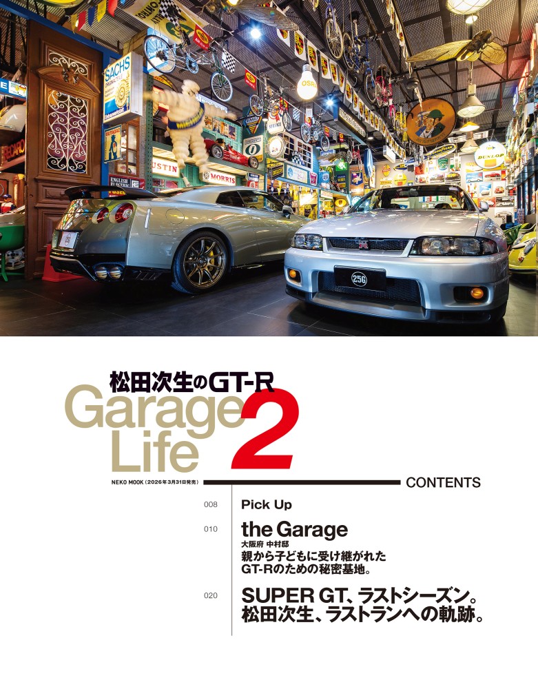 GT-Rばかりが収められたガレージ15軒を収録した「松田次生のGT-R GarageLife2」が発売。2026年度から監督も務める松田さんが、実際にGT-Rが入ったガレージを訪問しオーナーとクルマの話、ガレージの話を伺う企画の1冊。日本をはじめ、台湾、タイ王国のGT-Rのガレージを収録。そしてSUPER GT2025のレースシーンもお届け。スペシャル対談としてMINI GT、日下エンジニアリング、REBDEZVOUSの社長との対談も収録。GT-Rファンをはじめ、松田次生さんのファン、GarageLifeのファンまで楽しめる内容の濃い1冊をお届けする。