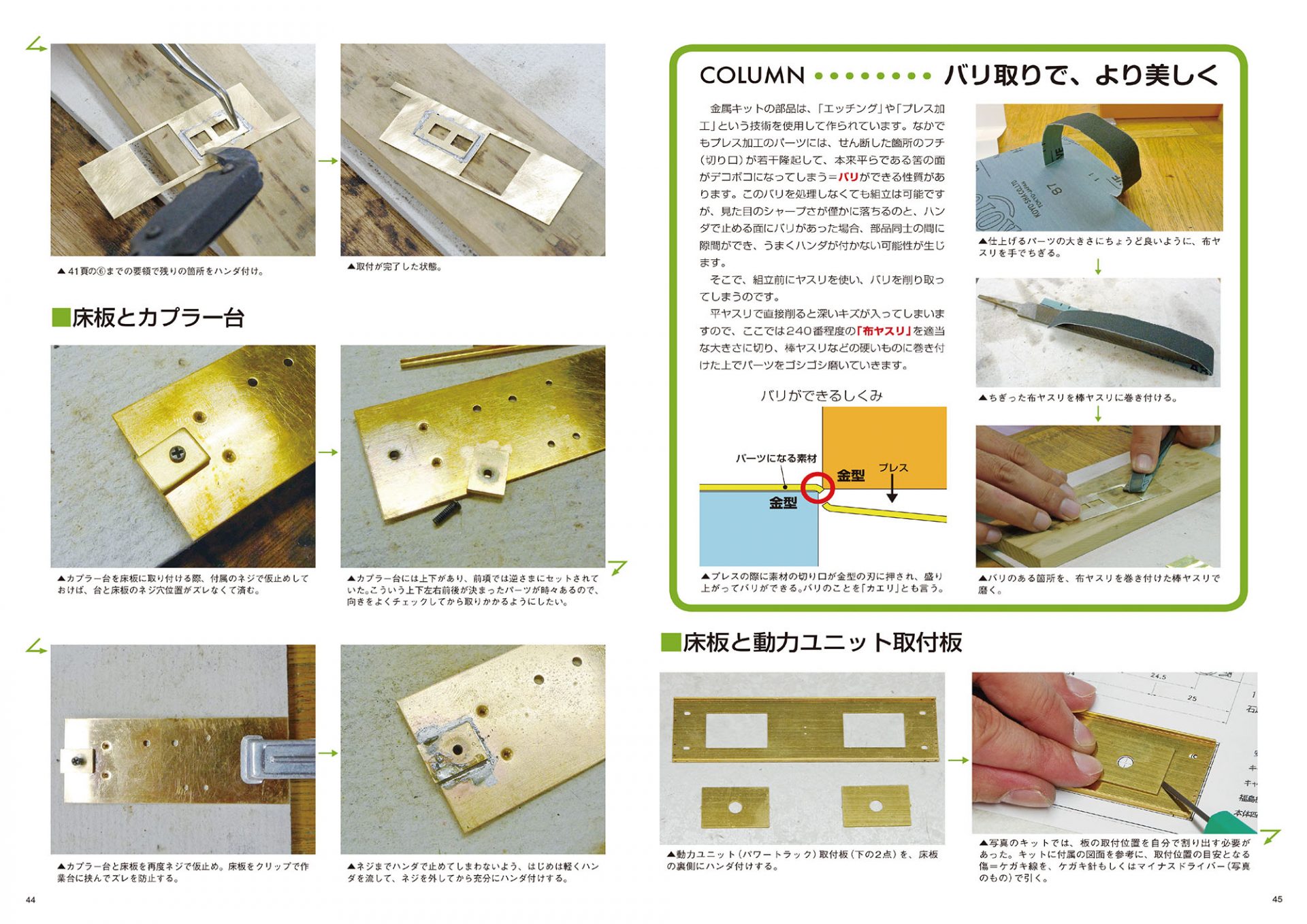 鉄道模型の車両工作の素材は大きく分けて、プラ・ペーパー・金属の3種に分かれます。その中で長い伝統があり、素材として経年による劣化が少ない点で信頼性があるのが金属による工作です。模型工作で使われる金属は加工性に優れ、かつ模型としての十分な強度があり、安価で手に入るという点から真ちゅうが伝統的に使われています。この真ちゅうを使って車体を組み立てる時の接合方法となるのがハンダ付けです。ハンダ付けは、鉛とスズを主成分とした合金・ハンダをハンダゴテの熱によって溶かし部材と部材を接合するもので、一般的には電線の結線に使われる技法ですが、模型工作の場合、結線のハンダ付けと大きく異なり、模型工作では部材と部材の間にハンダを流すと言い表したほうが分かりやすいでしょう。では“ハンダを流す”ためにはどのような道具を揃え、どのようにハンダゴテを使いまわすのか、そのためのあらゆる工作シーンに対しての技法を解説したのが本書になります。 本書は、2014年に刊行した『鉄道模型 ハンダ付け入門』を基に、2018年の改定を経て、今回『令和新版 鉄道模型ハンダ付け入門』として、2度の改定を経ました。特に従来よりも16ページに渡って記事を追加し、従来は少ないと言われていました、製作実例を2つ追加。巻頭にはハンダ付けによって組み立てられた作品をグラビア的に紹介する記事も収録しています。