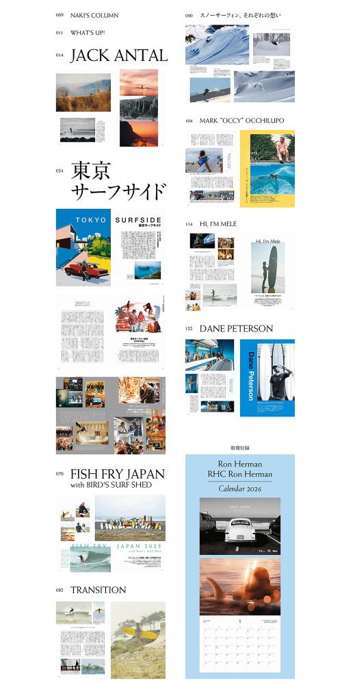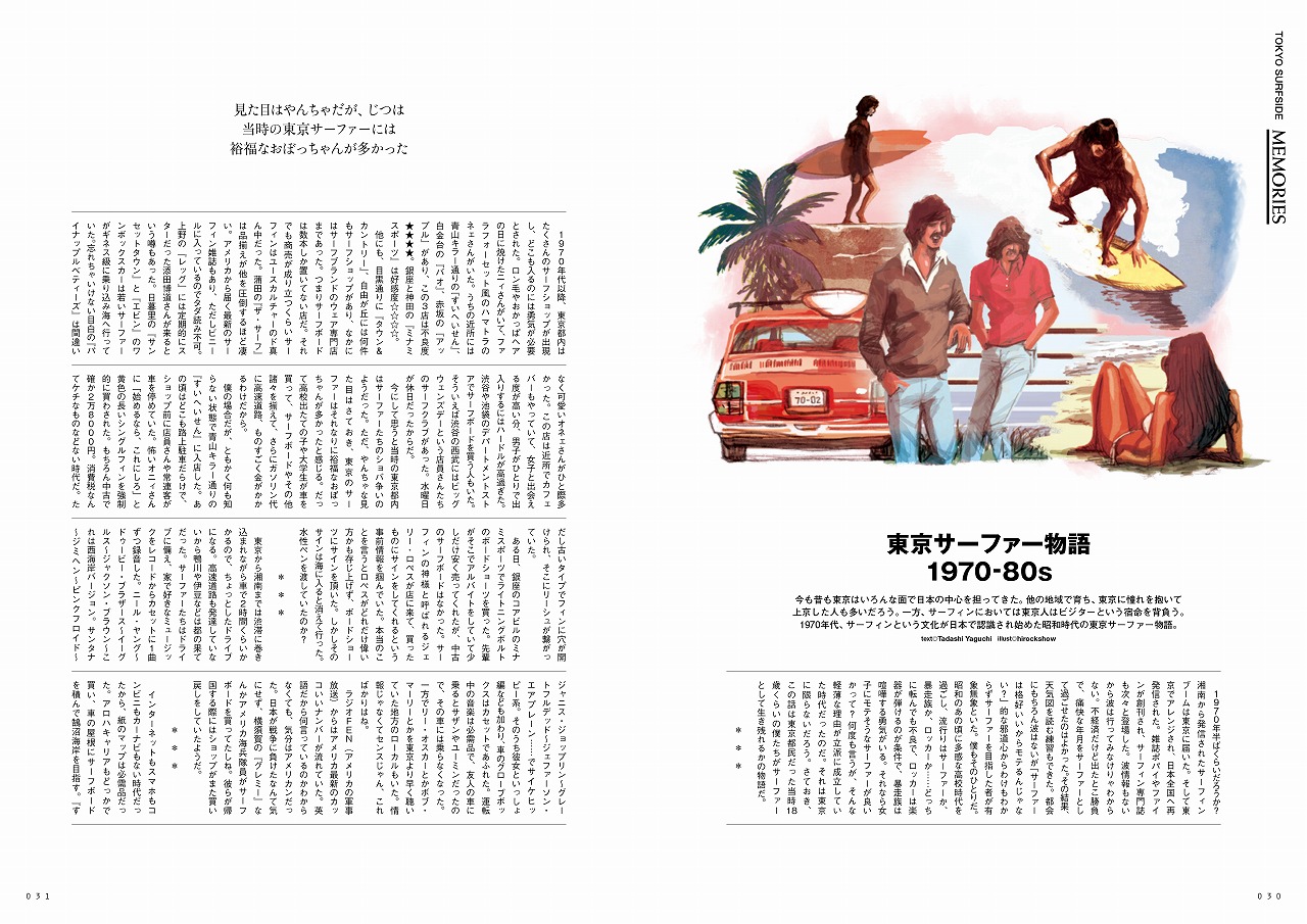 東京サーファー物語 1970-1980s / 私のドライブ&ミュージック / 先駆者の足跡 - THE SURF - / 島に生きる / カルチャーと出会う舞台 - RHC Ron Herman - / TOKYO SURFERS 私にとっての東京 / スタイルありき TOKYO SHOPS / アートとサーフィンの蜜月