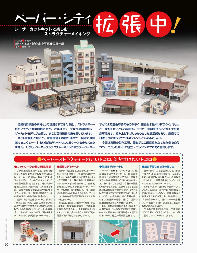 鉄道模型において、情景を彩るアイテムとして重要な役割を果たすストラクチャー。近年は生産技術の向上で、より細密に表現されたモデルはもちろん、レーザーカットや3Dプリントによる製品も増え、情景再現の幅は大きく広がっています。そこで今特集では、トレンドの製品や厳選した作例を紹介し、それらを考察しながらストラクチャー活用のテクニックに迫ります。さらに、現在製品化されている駅ストラクチャーのモチーフとなった駅にも突撃!いったいどのような駅なのか必見です。