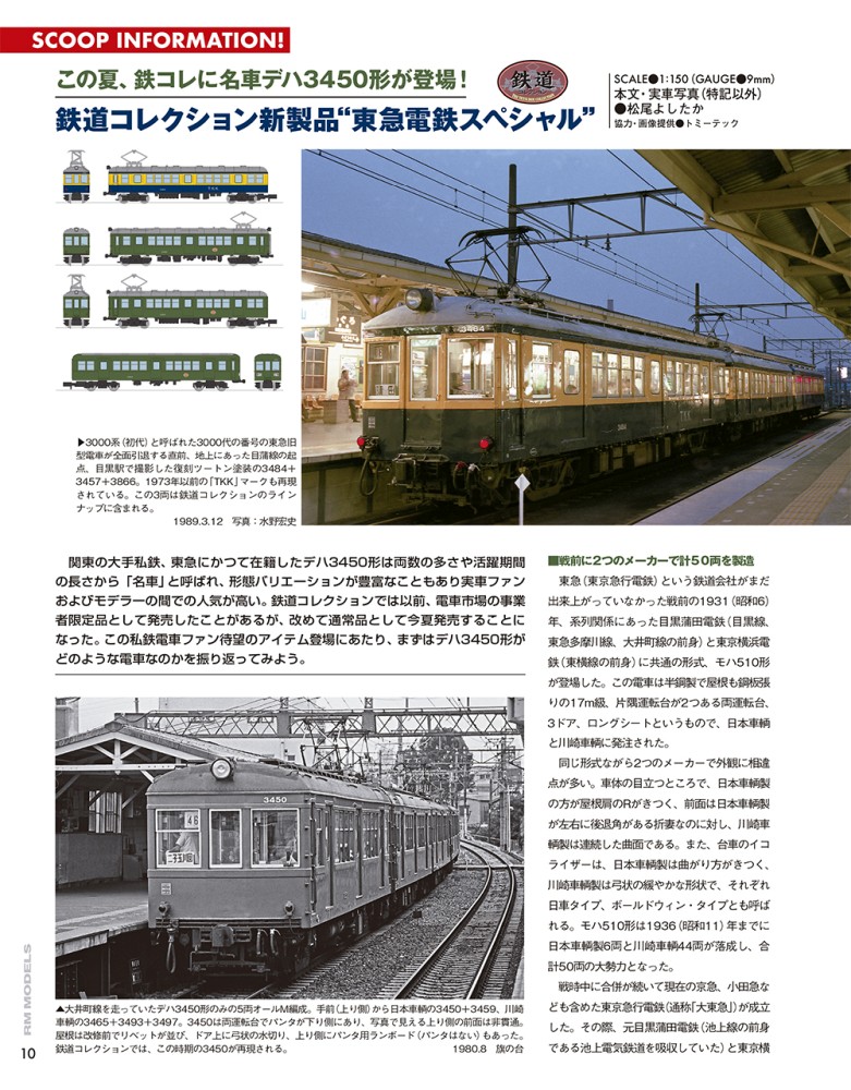 【その他】・SCOOP INFORMATION! この夏、鉄コレに名車デハ3450形が登場!・Mimaki&GREENMAX フルカラー3Dプリントの可能性を探る!ガイアノーツJR西日本中国地域色製品インプレッション・別れは出会いの始まり~燃え尽きたコレクションは趣味の再生エネルギー!?~・PLAY BACK RM 過去の取材写真から 1996年3月福知山・ハイテックトレインコントローラーHTC-100とは⁉