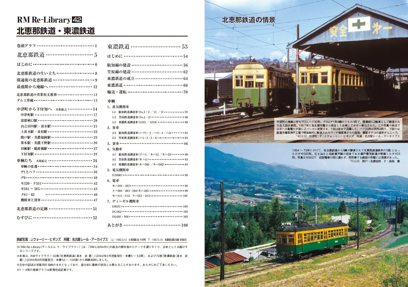ついに300巻を超えた長い歴史の「RM LIBRARY」から、過去の傑作巻を2~3冊分まとめて復刻する「RM Re-Library(アールエム リ・ライブラリー)」。シリーズ42巻目は、RMライブラリー第32巻「北恵那鉄道」、72巻「東濃鉄道」(共に清水 武 著)」という、岐阜県の今は亡きローカル私鉄(バス会社としては両社健在)を復刻いたします。 北恵那鉄道は、中央西線中津川に隣接した中津町から下付知まで22キロあまりの路線で、1924年の開業時から電化されていました。木曽産の木材の輸送などの貨物輸送も行いましたが、自社では基本的に機関車を持たず、電車が数両の貨車を牽引するスタイルが特徴でした。モータリゼーションの進展・沿線の過疎化などの要因で1960年代には輸送量のピークが過ぎ、1972年には昼間の列車をバス代行となるなど末期状況を呈した後、1978年に全線廃止となっています。その後会社は北恵那交通と名を変え、バス会社として健在です。東濃鉄道はルーツの異なる2つの路線があり、中央西線の土岐津(現・土岐市)から東駄知間10キロ余りの駄知線(旧・駄知鉄道)と、同じく中央西線の多治見から笠原町間約5キロの笠原線(旧・笠原鉄道)が、他のバス会社などと戦時統合された成り立ちでした。駄知線は戦後に電化され堅調でしたが1972年に水害で鉄橋が流失、結局復旧されることなく1974年に廃線となりました。笠原線は極めて短距離ということもあり、旅客輸送は比較的早くからバスに移行、1971年に旅客輸送廃止となり貨物専業となりましたが、それも1978年限りで終了しました。会社は東濃鉄道という社名のまま域内有数のバス会社として健在です。本書では同じエリアで比較的似た経緯を辿った2社3路線について、開業から廃止までの沿革、路線、車両を詳細に解説。特に車両解説には重点が置かれており、個性豊かな陣容のすべてが手に取るように理解できることでしょう。車両竣功図や駅構内配線図などの図版も豊富に収録しています。この2つの鉄道については今なお決定版、待望の復刻と言えましょう。