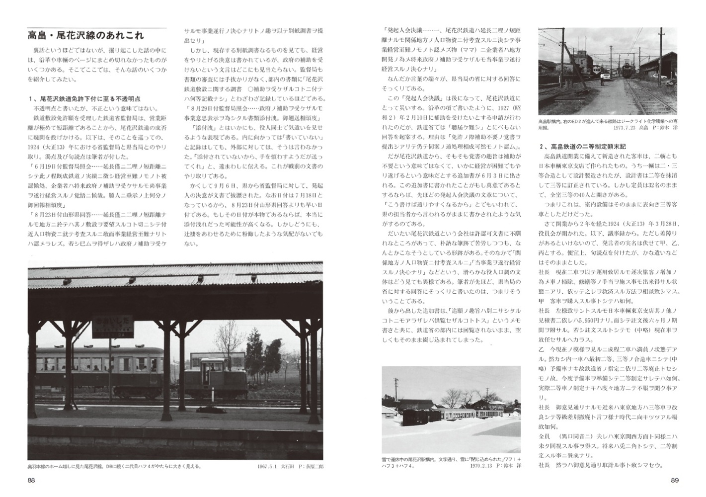 ついに300巻を超えた長い歴史の「RM LIBRARY」から、過去の傑作巻を2~3冊分まとめて復刻する「RM Re-Library(アールエム リ・ライブラリー)」。シリーズ43巻目は、RMライブラリー第78巻「山形交通三山線」、82巻「山形交通高畠線・尾花沢線」(共に鈴木 洋・若林 宣 著)」という、山形県内陸部にあったそれぞれ独立したローカル私鉄路線を復刻いたします。 山形交通という会社は現在はヤマコーという商号にて県内で交通事業・不動産他手広く事業を手掛けていますが(バス事業は子会社の「山交バス」)、そもそも戦時中の統合にてそれぞれ別会社だった三山電気鉄道・高畠鉄道・尾花沢鉄道と周辺のバス会社を合併して誕生した会社です。3つの鉄道はそれぞれまったく接続がなく、また規模も比較的小さかったことから統合による合理化などは図りようがなく、また統合時点で既にバス事業の方が割合として大きかったこともあり積極的な投資は行われずに、1970年代初頭に相次いで廃止となってしまいました。三山線(←三山電気鉄道)は国鉄左沢線羽前高松から間沢までを結んだ鉄道で、国鉄支線の途中駅から分岐するという点で現役時代は「訪問しづらい路線」として知られていました。路線名は地名ではなく「出羽三山」から取られており、山岳信仰の参詣者を運ぶことが大きな目的であったとされます。開業時から電化されており、1974年に廃止されました。高畠線(←高畠鉄道)は国鉄奥羽本線糠ノ目(現:高畠)から高畠を経て二井宿を結んだ鉄道で、当初は非電化でしたが、戦前に電化。三山線には居なかった電気機関車も2両保有していました。廃止は三山線と足並みを揃えた1974年のことでしたが、それに先立って高畠~二井宿間は鉄橋損壊によって休止→廃止となっていました。尾花沢線(←尾花沢鉄道)は国鉄奥羽本線大石田から尾花沢を結ぶ、途中駅もない非常に短い路線で、終始非電化でした。非常に小型の2軸ディーゼル機関車の奮闘が見られましたが、1970年に廃止となっています。本書では異なる生まれ・立地からなる個性的な3路線をそれぞれの沿革から路線紹介、車両解説まで幅広く掲載しております。車両竣功図などの図版も豊富に収録。山形交通の3路線については今なお決定版、待望の復刻です。